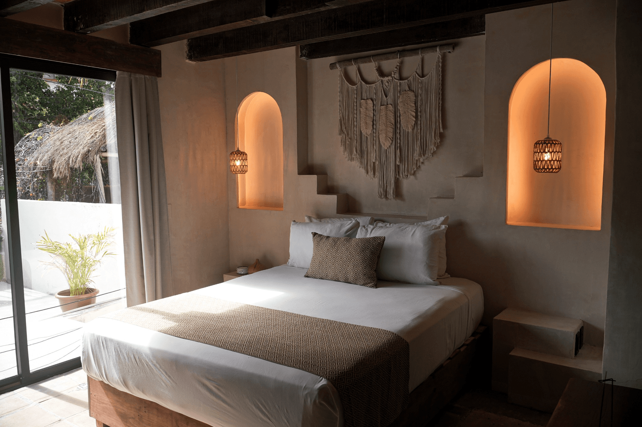 ur Deluxe Unique Room is the finest expression of Enigmatic’s style — spacious, serene, and thoughtfully designed for a truly elevated stay. Each room blends bohemian elegance with natural textures, warm tones, and handcrafted details that create a relaxed yet refined atmosphere. Generous in size, these rooms offer a seamless balance between comfort and design, featuring a king-size bed, curated décor, and an inviting ambiance filled with soft natural light. Select rooms include private terraces or outdoor soaking tubs, perfect for unwinding in complete privacy. More than just a room, it’s a sanctuary — designed for those who appreciate space, style, and a deeper sense of calm.