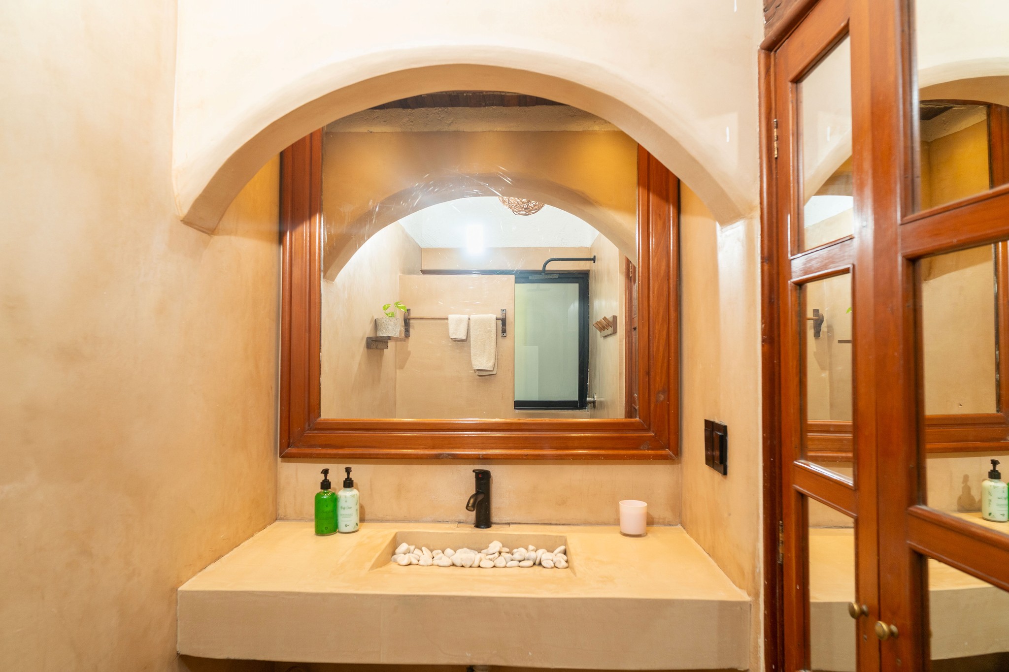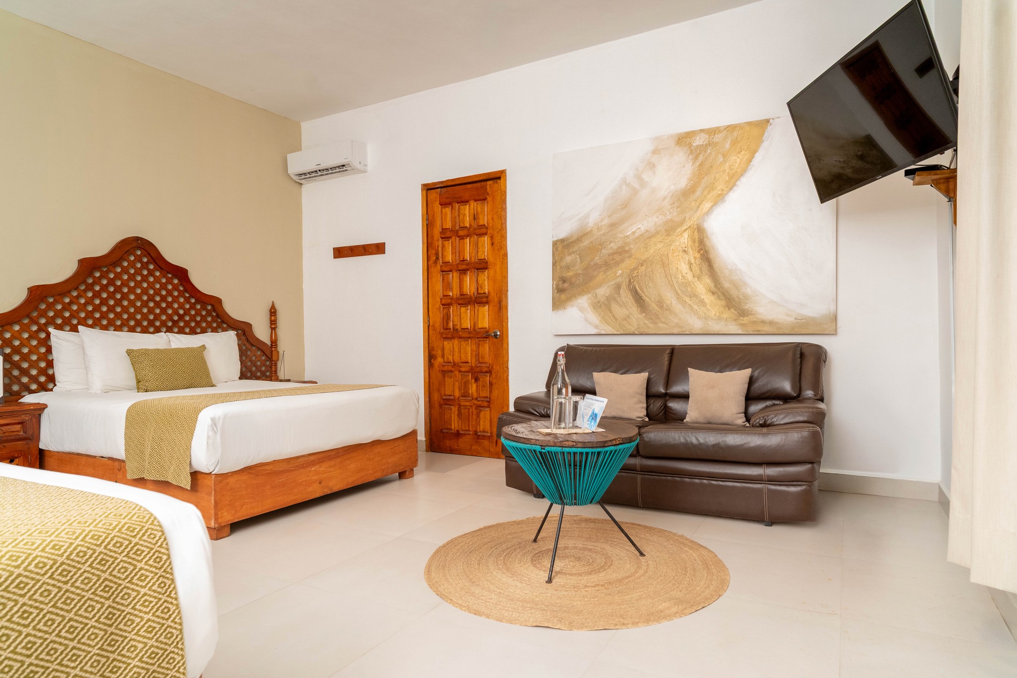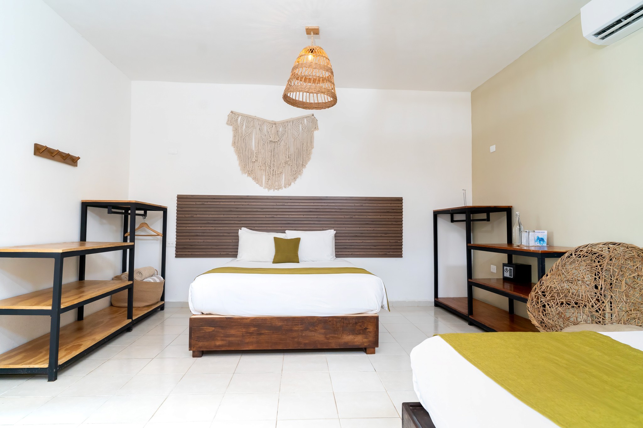 Designed for comfort without sacrificing style, our Deluxe Two Queen Room is perfect for friends or small groups traveling together. Featuring two spacious queen-size beds, this room blends functionality with Enigmatic’s signature boho aesthetic. Natural textures, warm tones, and thoughtfully curated details create a relaxed and inviting atmosphere, while the generous layout ensures everyone has space to unwind. Large windows fill the room with soft natural light, enhancing the calm and airy feel. Ideal for shared stays, this room offers the perfect balance between togetherness and personal comfort.